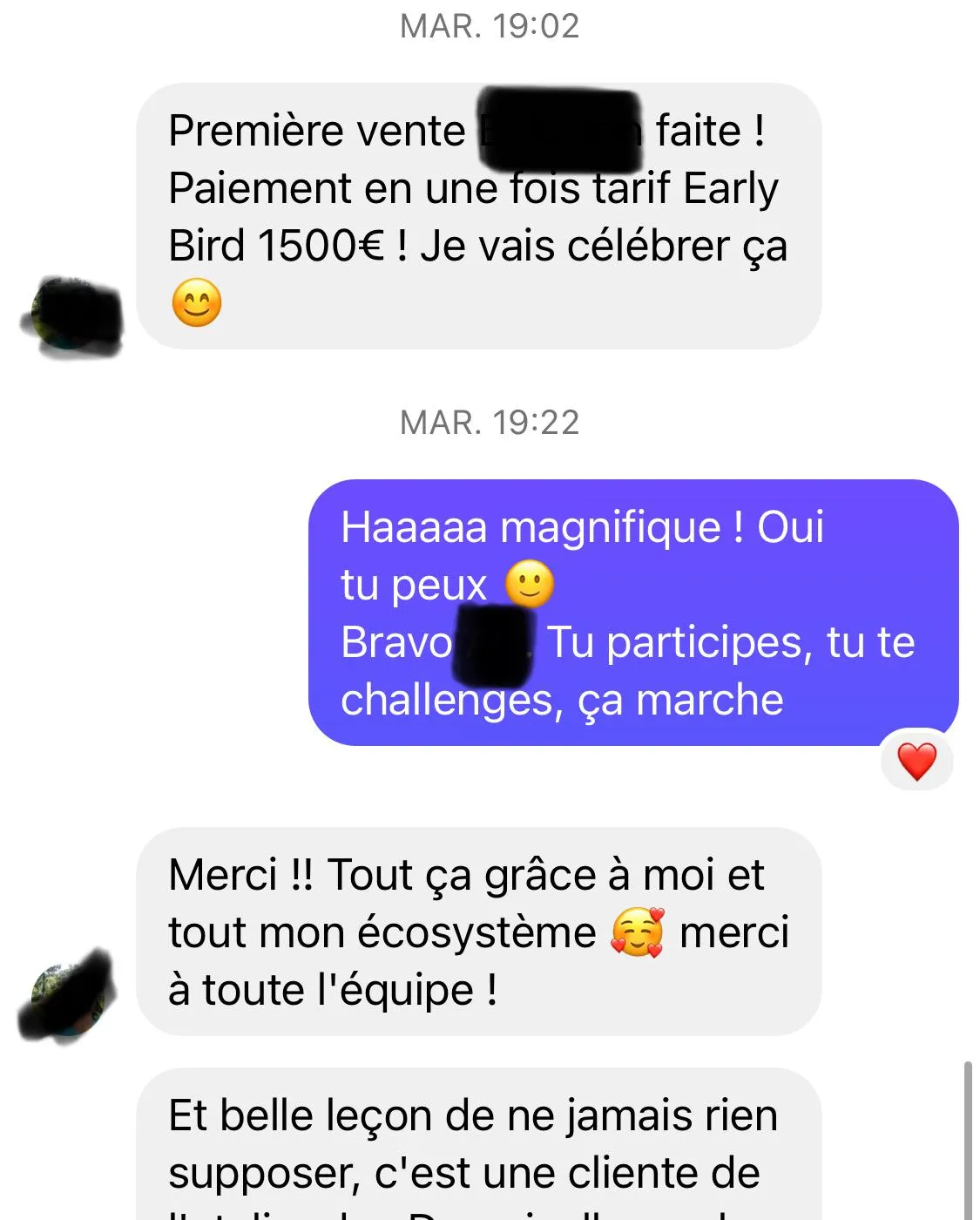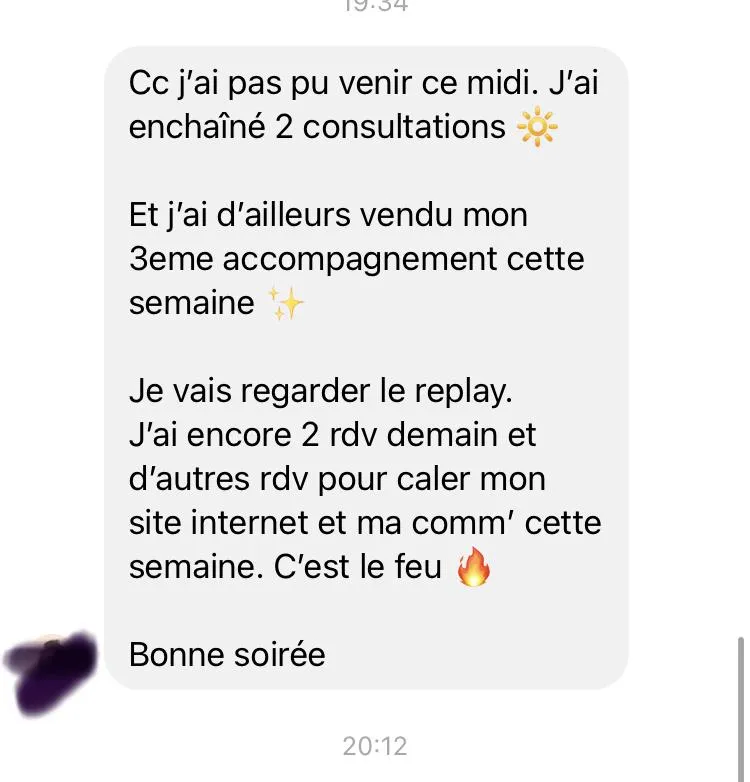 Maëlia (11 500€ en 1 semaine), Tony (8 000 € en 3 semaines), Carole (85% de ses clients en cabinet prennent son offre phare), Sylvie (2 ventes à 1 600 € dans la même journée), etc.